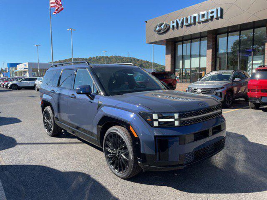 Atlantis Blue 2026 Hyundai Santa Fe Calligraphy AWD 8-Speed Automatic with SHIFTRONIC 2.5L I4 AWD, Black Leather.